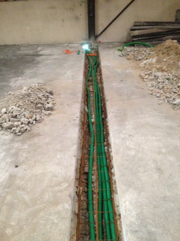 Les murs sont construits en agglo pour séparer les quatres entrepôts et puis enduit ,et création pour chaque entrepôts d' un local sanitaire de la construction à la plomberie .